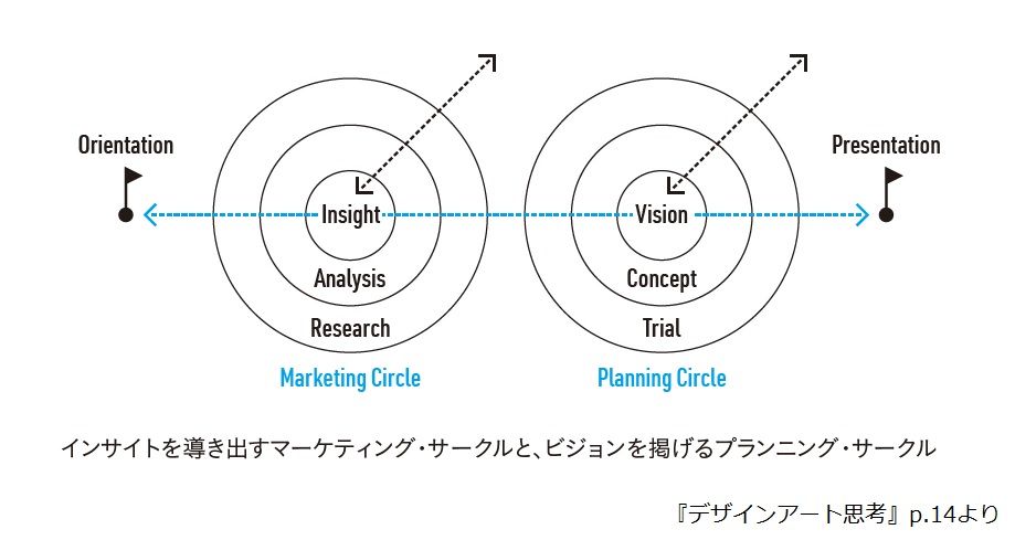 デザインアート思考のプロセスは2つの円から成り立つ。