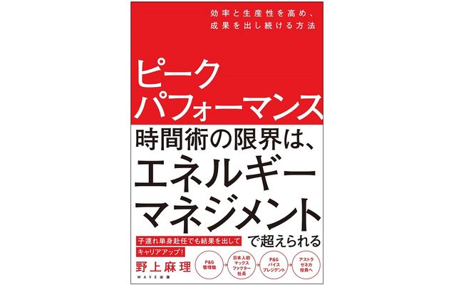 野上氏は著書『ピークパフォーマンス』(WAVE出版刊)で、「ビジネスのプロは時間よりエネルギーを大切にする」として、成果を最大化するには、自分のエネルギーをマネジメントすることが必要だと述べている。