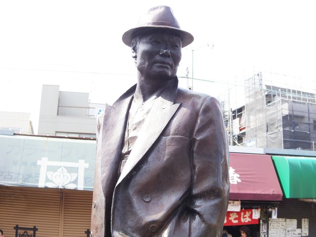 柴又の駅に着くと、柴又のシンボル、寅さんが出迎えてくれる。