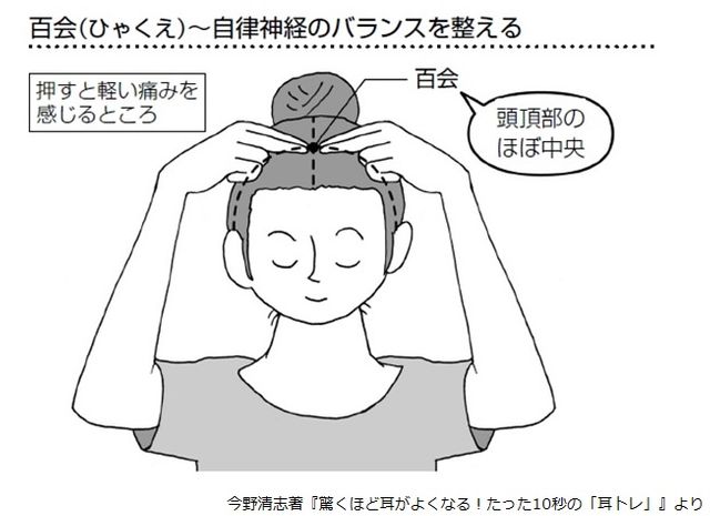 今野さんによれば自律神経を整えるためのツボとして「百会(ひゃくえ)」と「指間穴(しかんけつ)」をあげています。