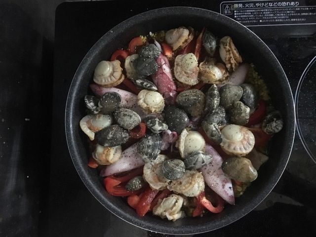 基本的な調理は蓋をしたフライパンで具や米を炊く、というものだが、あさりの砂を出したり、イカの軟骨を取ったりと下ごしらえがある。
