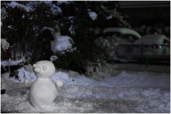今年、東京に大雪が降った日。「こりゃあ雪だるま作らねば!」と衝動的に思い立ち、おこたから抜け出し、深夜に一人で雪だるまを作りました。2時間かかりました。