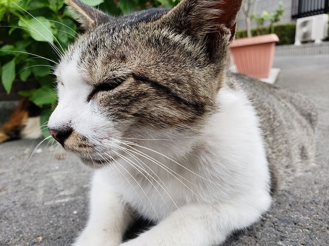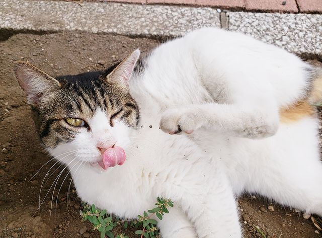 ちょうどいい所に、野良の猫が無の表情で空を見つめているではありませんか。