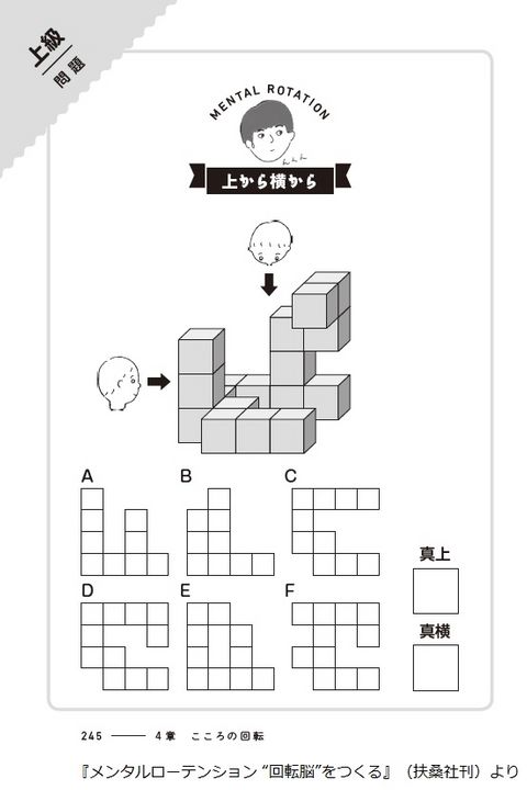 そんなメンタルローテーションを鍛えることができるのが本書。1日数問ずつ、それでも頭をかなり使うことになるだろう。ぜひ本書でメンタルローテーションを磨いてほしい。