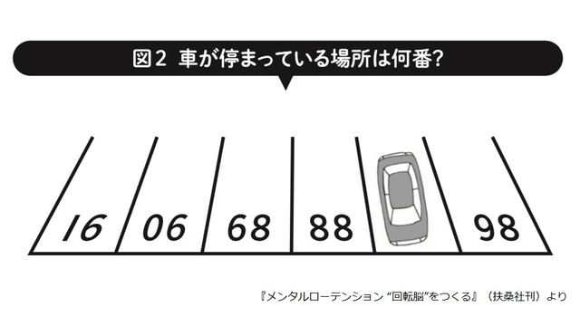 池谷さんは**「紛れもなくメンタルローテーションの問題です。しかし一方では『常識問題』でもあります。なぜなら、車を駐車するときに、運転手がどの方向から数字を眺めているのかを、当事者の立場になって考えられるかが解答の鍵を握っているからです」**(p.10より)と述べる。
